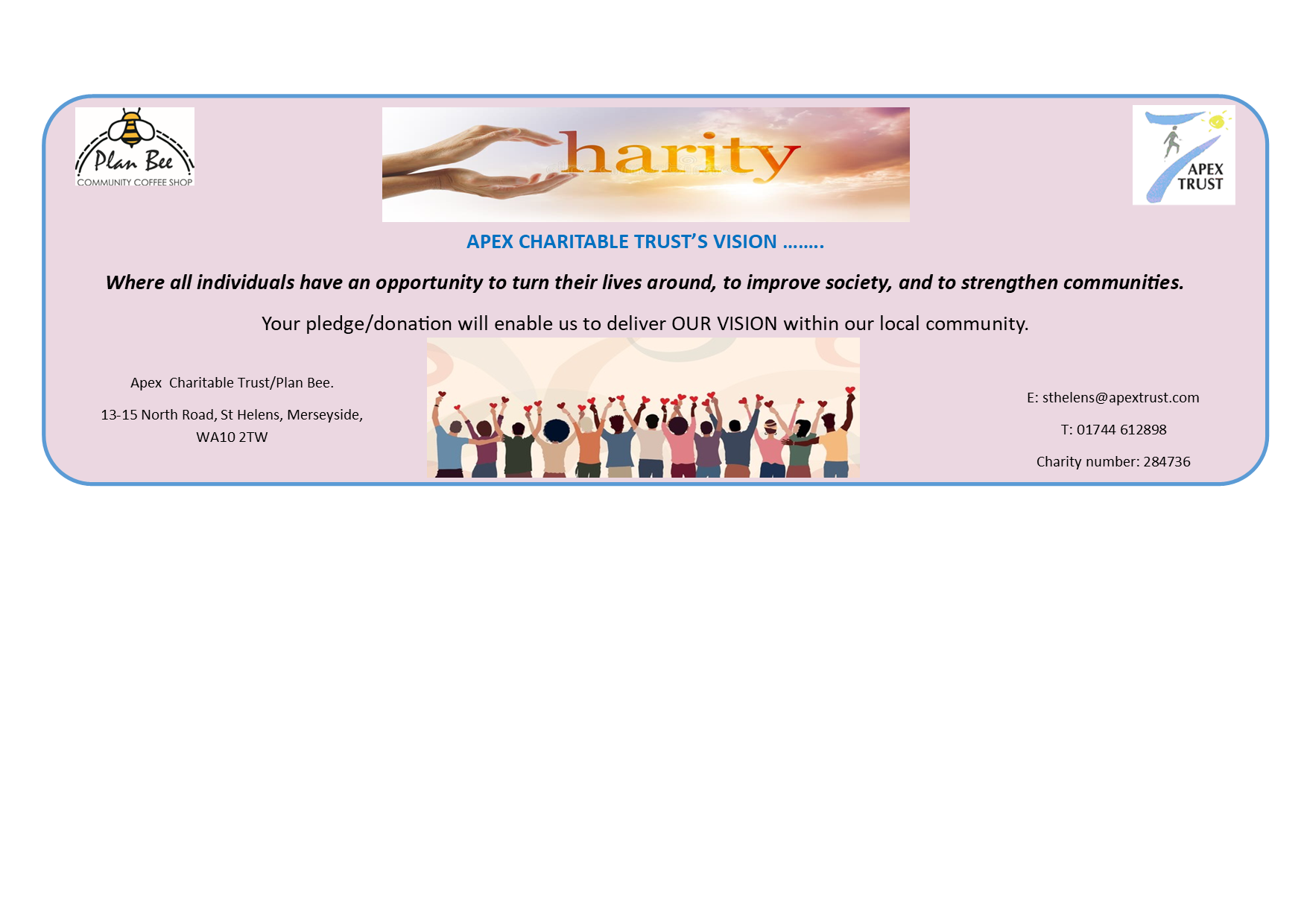Thank you for your ongoing support which enables us to provide key services within our local community.
